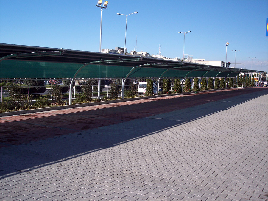 - Το καμπυλωτό σκίαστρο φέρει στατική μελέτη η οποία εξασφαλίζει ακόμη και χωρίς την βοήθεια των παρεχόμενων, επιπρόσθετων υποστυλώσεων, ιδιαίτερη αντοχή σε υψηλά επίπεδα χιονόπτωσης και σε ισχυρά φορτία ανέμου.