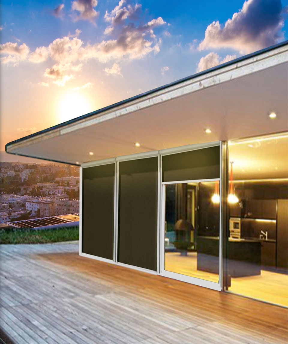 Ιδεατή λύση για σκίαση κτιρίων με μεγάλες γυάλινες επιφάνειες. Τοποθετείτε εξωτερικά ή εσωτερικά ενώ στις περιπτώσεις εξωτερικής τοποθέτησης, εκτός της σκίασης, πετυχαίνουμε και αερισμό του κτιρίου.