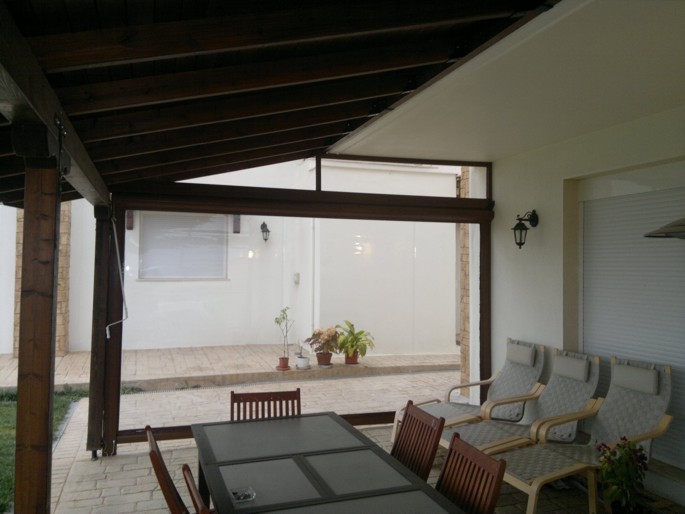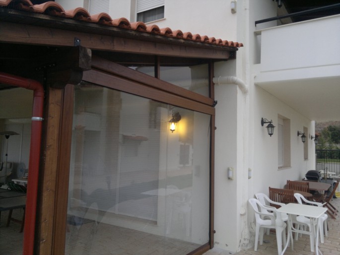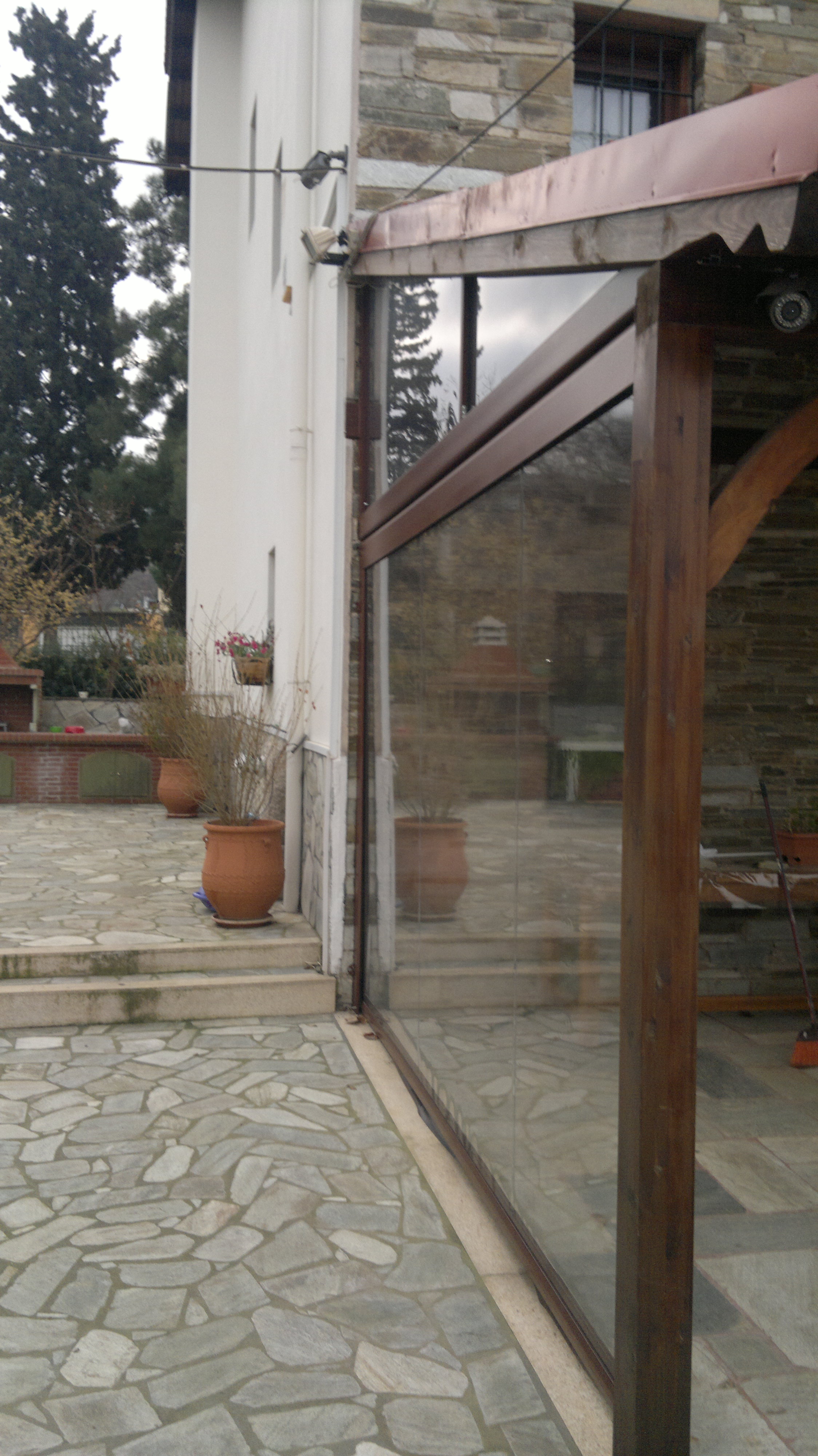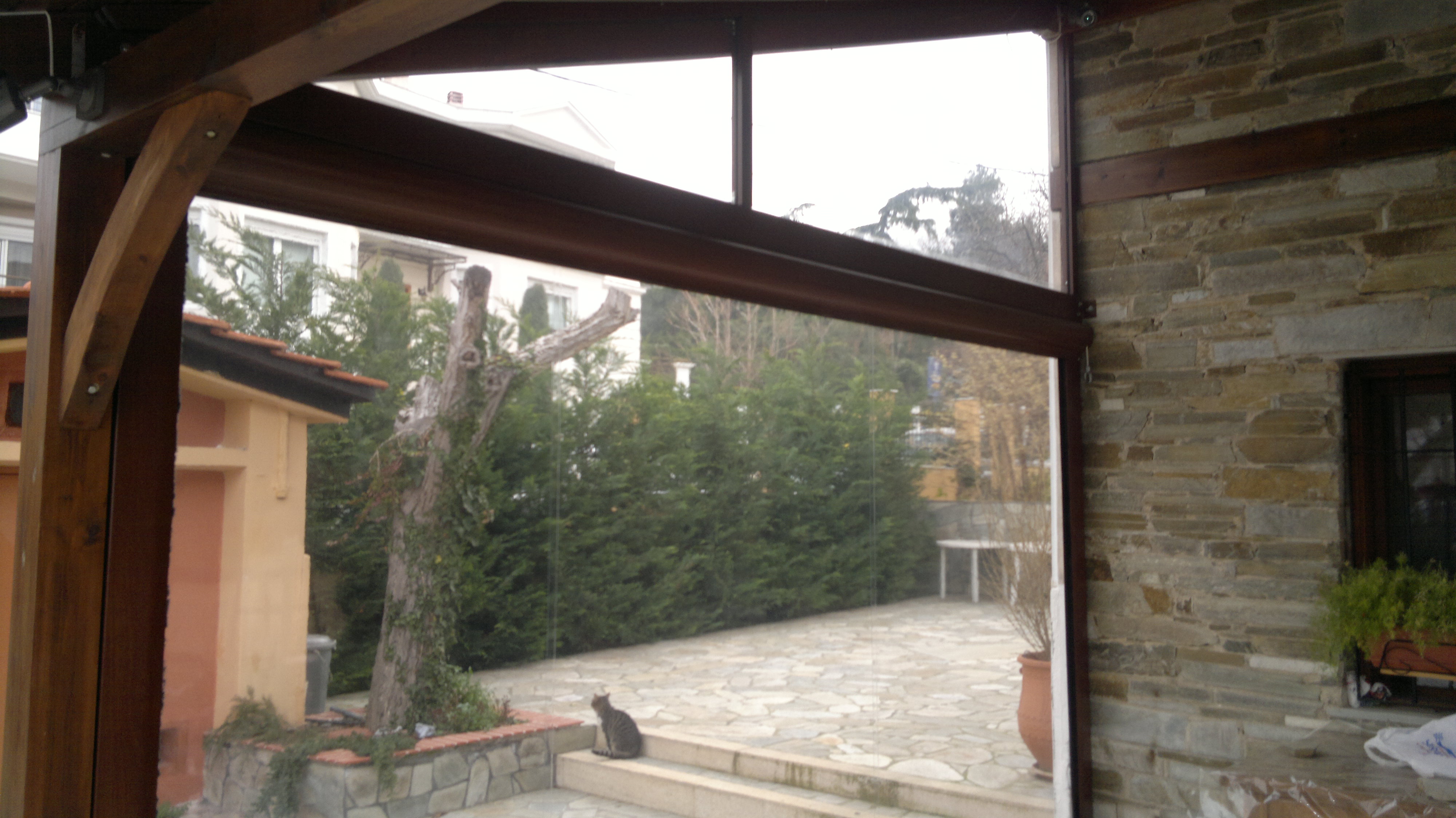 Κάθετες τέντες με διαφανή ζελατίνα για προστασία της οικία σας από δυνατούς ανέμους. Εξοικονομείστε ενέργεια και ταυτόχρονα προστατέψετε το μπαλκόνι και τα φυτά σας από την παγωνιά. Η καλύτερη λύση όταν δεν επιτρέπεται να τοποθετήσουμε τζάμια. Κάθετες ζελατίνες με οδηγούς και κασονέτο για πλήρη μόνωση και όμορφη εμφάνιση